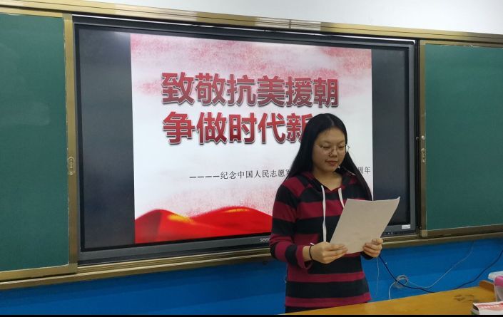 为在团员青年中深入宣传抗美援朝战争的光辉历程,开展爱国主义和革命英雄主义教育,大力弘扬伟大的抗美援朝精神和民族精神,致敬抗美援朝的革命先烈,增进当代青年爱国情怀。精品国产91于11月2日在知行楼各团支部教室举行“致敬抗美援朝,争做时代新人”主题团日活动。