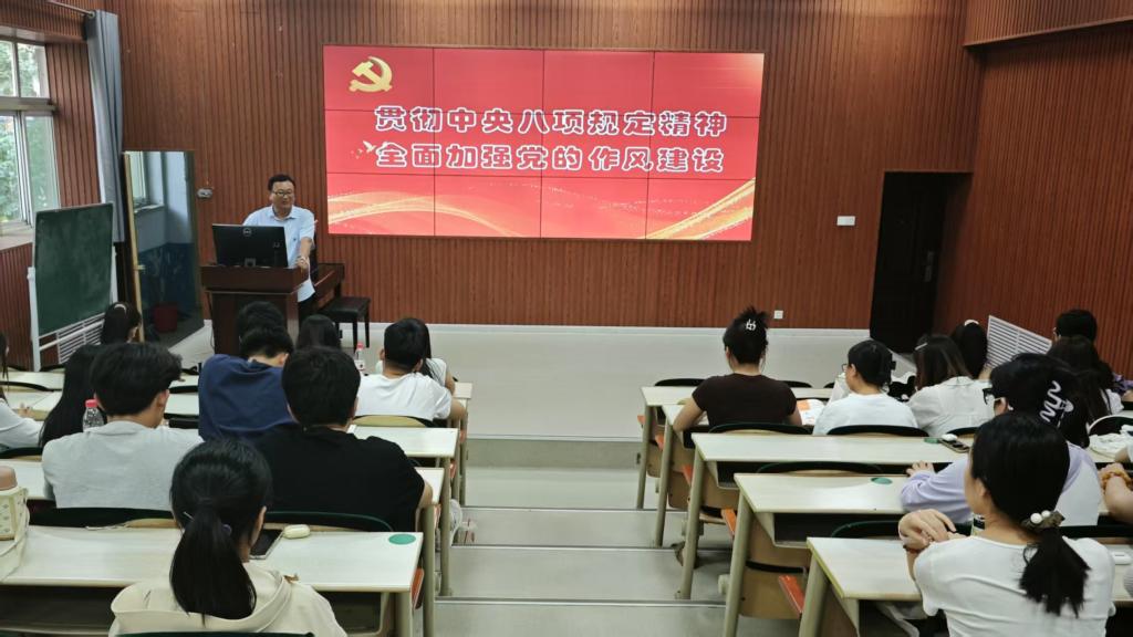 党课要求,全体师生党员要进一步深入学习贯彻中央八项规定及其实施细则精神,始终把讲政治纪律和政治规矩摆在首位,不断加强党的作风建设,提升工作能力,全面改进工作,以良好的党风引领校风学风,为推进我院高质量发展发挥党组织和党员更大作用。