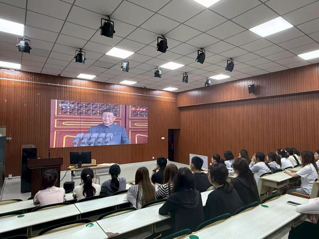 直播过程中,师生们满怀激动之情,认真聆听学习了习近平总书记在庆祝大会上的重要讲话。总书记在讲话中强调了中国人民抗日战争的艰苦卓绝,指出中国人民在抗日民族统一战线旗帜下,取得了近代以来反抗外敌入侵的第一次完全胜利,同时也强调了中国人民抗日战争对世界反法西斯战争的重大贡献,以及历史对人类命运休戚与共的警示。师生们还一同观看了庄严而震撼的阅兵仪式,看着整齐划一的方阵、先进的武器装备,大家心中充满了自豪与骄傲。