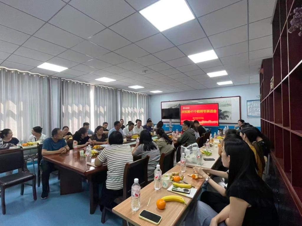 为热烈庆祝第41个教师节到来,9月10日下午,教师教育学院举行了教师节主题茶话会,学院全体教师欢聚一堂、共庆节日。