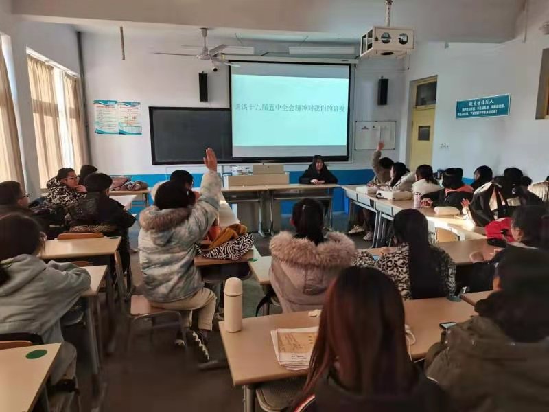 班会伊始,团支书与同学们分享了有关十九届五中全会的相关内容,主要包括参会人员、会议地点以及会议内容等。随后,邀请同学们与大家分享自己的学习心得,要把学习贯彻习近平法治思想与学习贯彻习近平总书记关于坚持和完善人民代表大会制度的重要思想,与学习贯彻党的十九届五中全会精神紧密结合起来,持续跟进、融会贯通学习领会党的创新理论,不断提升政治站位、理论水平和履职能力。