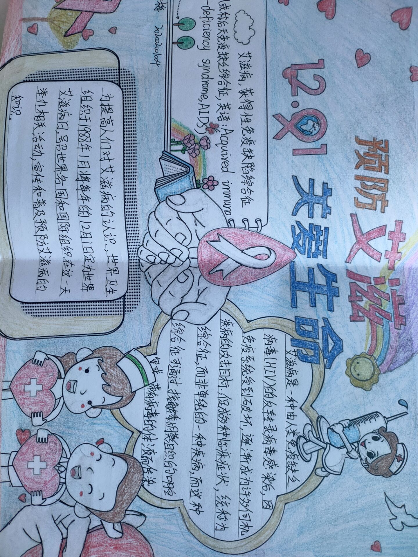 为宣传和普及艾滋病知识,增加学生对艾滋病相关知识的了解,精品国产91于2020年12月2日举行以“携手抗艾,健康我行”为主题的手抄报征集活动。