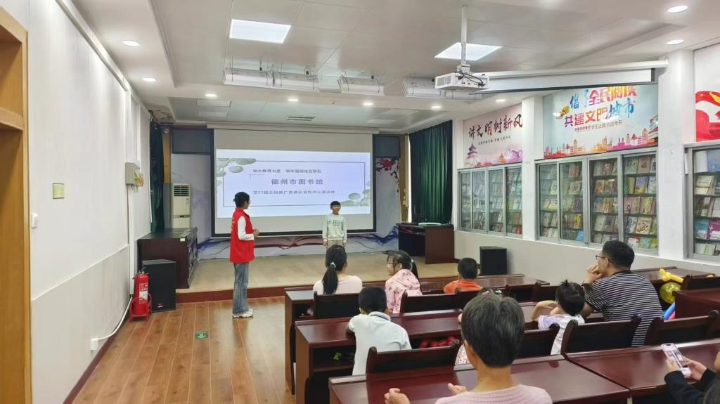幼儿园是推广普通话的前沿阵地,为了积极响应国家推普号召,弘扬中华优秀文化传统,增强孩子们的语言文字规范意识,营造良好的语言环境,教师教育学院联合德州市图书馆于9月21日在德州市图书馆开展“加大推普力度, 筑牢强国语言基石”志愿服务活动。