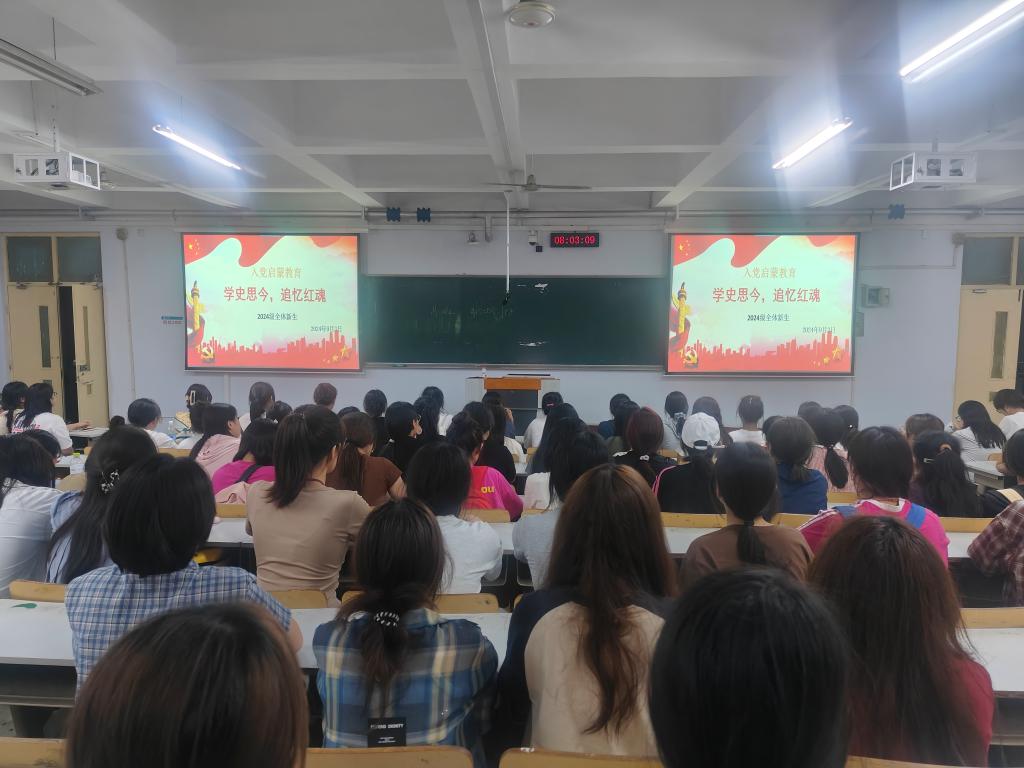 活动当天,教师教育学院精心挑选了多部具有深刻历史意义和教育价值的红色电影,如《开国将帅》、《长津湖》等。电影带领新生们回顾了中国共产党从诞生到壮大的光辉历程,一幅幅珍贵的历史照片,让新生们仿佛置身于那个烽火连天的年代。随后,学生党支部书记闵令珍老师给同学们分享红色故事,用质朴的语言和真挚的情感,讲述了革命先辈在艰苦卓绝的革命斗争中所展现出的英勇无畏的革命精神。新生们纷纷表示深受感动,同时表达了对革命先烈的崇敬之情和对当前幸福生活的珍惜之意,更加坚定了他们爱党爱国、敬业奉献的信念。