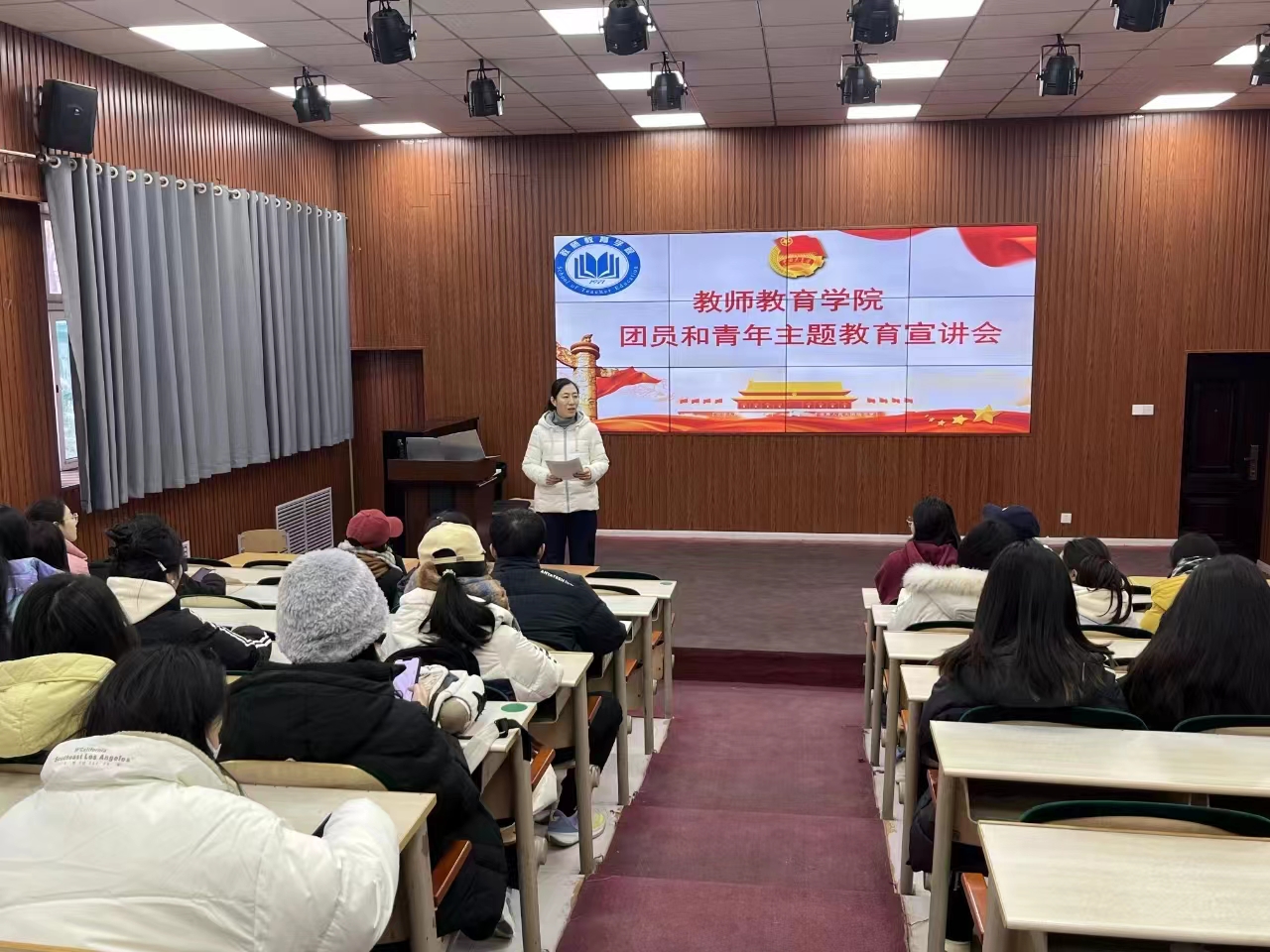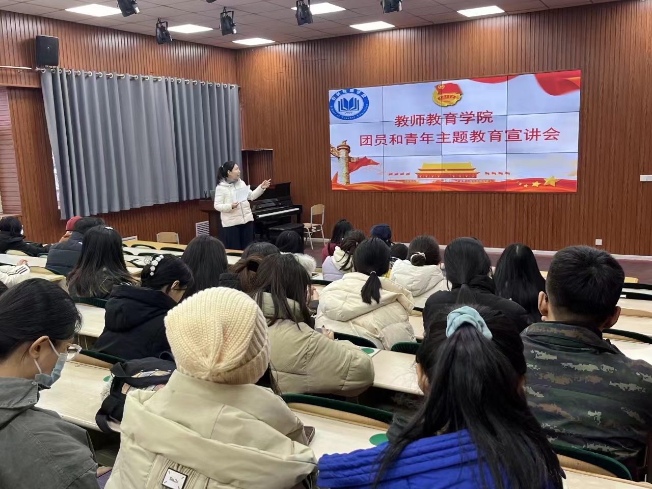 为深入学习贯彻习近平新时代中国特色社会主义思想,提高广大团员和青年的党性修养和思想意识,教师教育学院于12月22日在知行楼113教室举办团员和青年主题教育宣讲会。