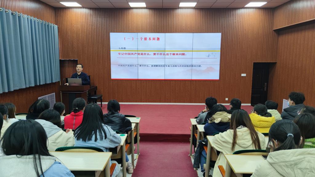 最后,魏希德通过讲解十九届六中全会精神,要求同学们全面认识党的领导核心地位。提高思想觉悟,正确领会十九届六中全会的精神内涵,早日投身到建设特色社会主义伟大事业中去,为推动高水平应用型大学建设和高质量发展贡献力量。
