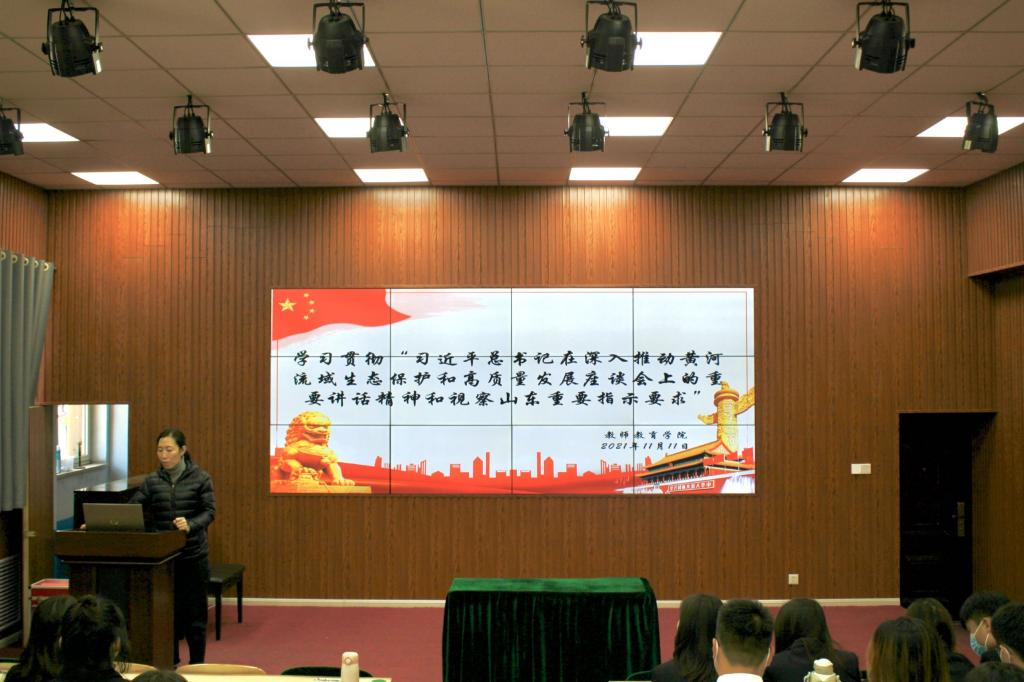 为传达学习习近平总书记在深入推进黄河流域生态保护和高质量发展座谈会上的重要讲话精神,教师教育学院于11月11日在知行楼113组织学习《习近平主持召开深入推动黄河流域生态保护和高质量发展座谈会上的重要讲话精神》。会议由团总支书记闵令珍主持。