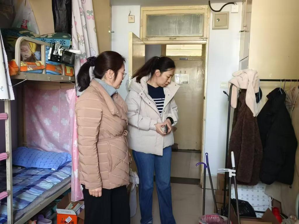 为强化学生安全意识,力保宿舍纪律安全有序,教师教育学院党委副书记闫娜娜、辅导员闵令珍于12月6日对2024级新生宿舍19号楼开展宿舍卫生与安全大检查活动,此次活动旨在通过检查学生宿舍卫生情况与排查电器、消防等安全隐患问题,确保学生的生命安全,营造一个和谐稳定的住宿环境。