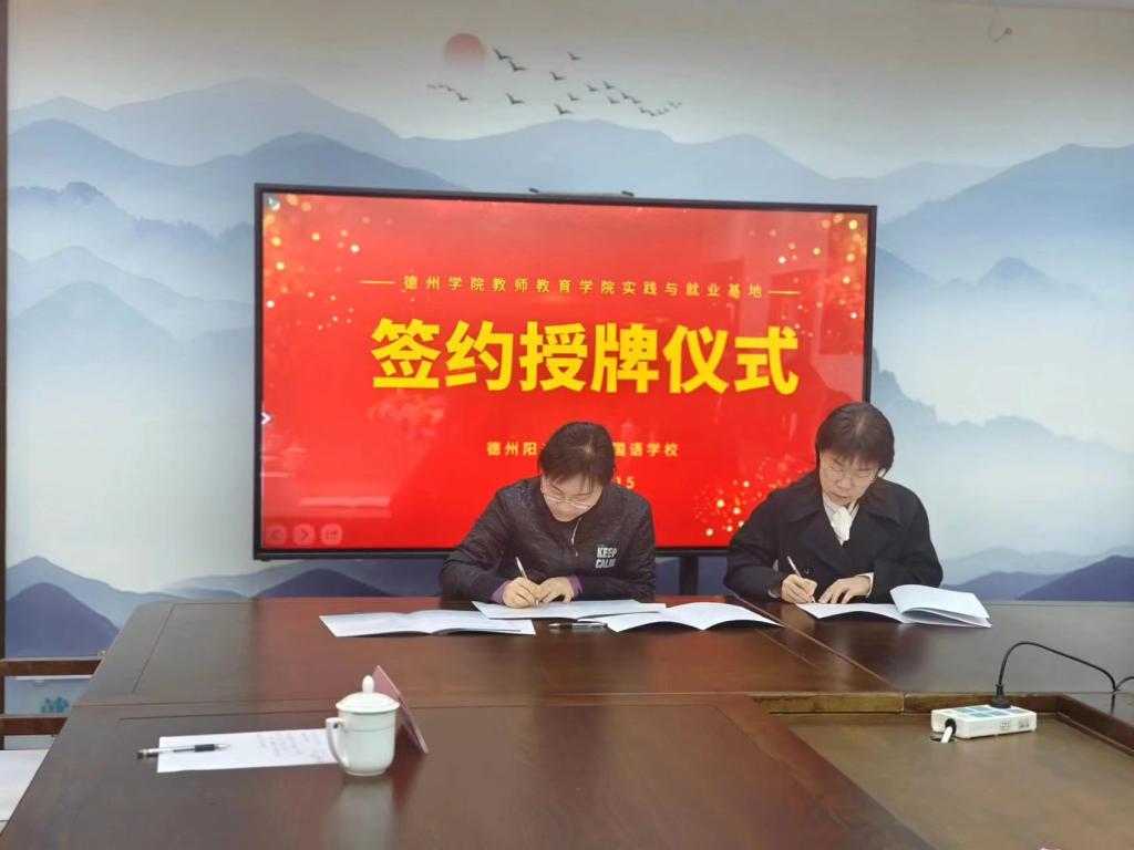 德州阳光未来国际学校校长安学新首先对学校的师资力量、办学理念、课程体系、育人体系等做了详细的介绍。教师教育学院副院长房敏从我院的专业特色、人才培养体系等方面介绍了学院的基本情况,并强调了实践基地对于提高学生实践能力和综合素质的重要性,表达了对于双方合作的期待和信心,希望双方在人才培养、实习就业等多方面进行深度合作。随后,双方签署教育实践基地协议书。