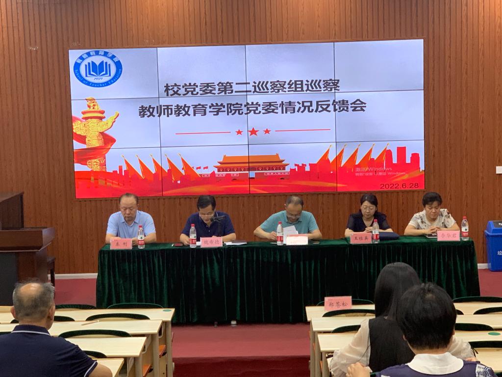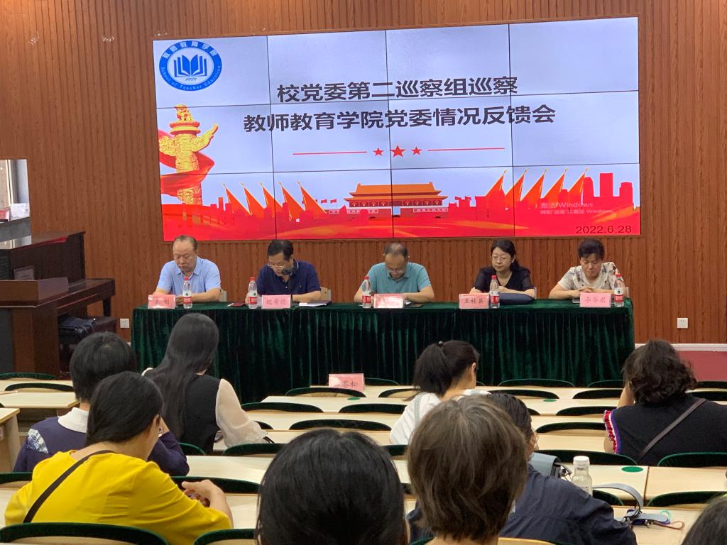 6月28日下午,校党委第二巡察组巡察教师教育学院党委情况反馈会于知行楼113召开。校党委第二巡察组组长、副组长,教师教育学院领导班子成员以及全体教职工参与会议,教师教育学院党委书记魏希德主持会议。