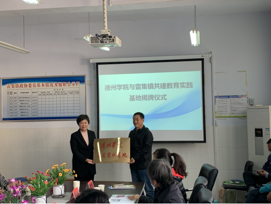 在雷集镇中学,举行德州学院实习实训基地授牌仪式,随后举办专场报告会,教师教育学院有关专家针对中小学教师关注的“双减”政策进行细致解读,解答了基础教育教学改革与发展中的热点难点问题,并对雷集镇中学申报的省级教学成果初稿进行指导点评。
