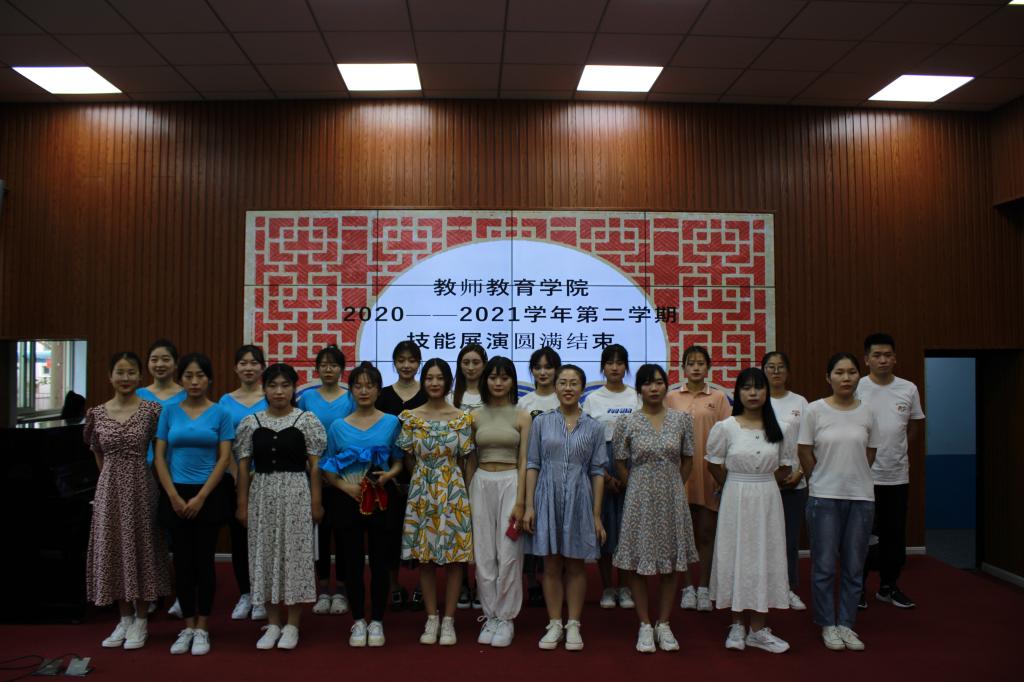 展演种类丰富多样,同学们用琴法或钢琴伴奏与弹唱 、声乐、舞蹈、国学经典诵读一系列形式展现了教师教育学院学子扎实的基本功。为调动每一名学生进行从教技能训练的积极性,达到全员训练的目的,每门课程随机抽取学生2—3人,由教师教育学院教学指导委员会根据开课内容随机抽取学生。随机抽取到的学生展演展览内容由学生在课程授课范围内自定。正式展演展览前的一周,依据开课学生的名单随机抽取学生。每人三分钟左右,内容自选,体现本人最高水准,与本学期开课课程相关。教学指导委员进行打分与点评。对各位同学赞扬鼓励,并对个别错误处进行教导指正。
