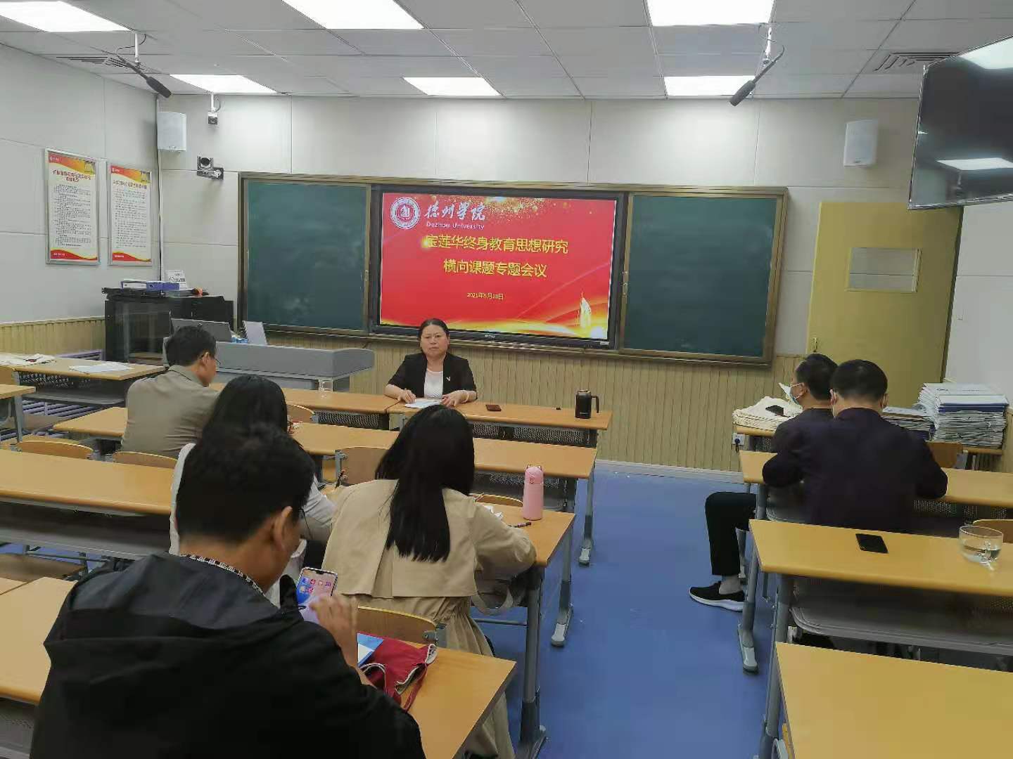 5月18日,教师教育学院“宝莲华终身教育思想”研讨会于知行楼409室召开。研讨会上,课题负责人讲解了宝莲华终身教育思想“五育”框架,分析了框架研制的背景、原则、内容、实施与评价等体系,部署了下一步的研究重点与小组分工。