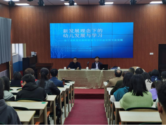 20日下午,王建平教授就“以高质量发展为题构建具有本土特色的学前教育理论与实际话语体系”题目进行了学术报告。教师教育学院全体教师及部分学前教育专业的学生参加了报告会。王教授从“教育的新发展理念——传承与发展、叙述方式的转变、对话方式的改变、发展方式的改变、学习方式的改变、发展的社会学意义、学科建设与专业发展、课程形态的改变”等八个方面进行了详细的解读。基于新发展理念视角提出以“人民为中心”的儿童本位观、以“全面发展”为目标的全要素思想和以“立德树人”为根本任务的全人教育的三方面看法,认为目前学前教育存在的问题主要表现为教育结构性缺失越来越明显,缺少基础学科知识的支持等,为学前教育的良性发展提供了启发和思路。
