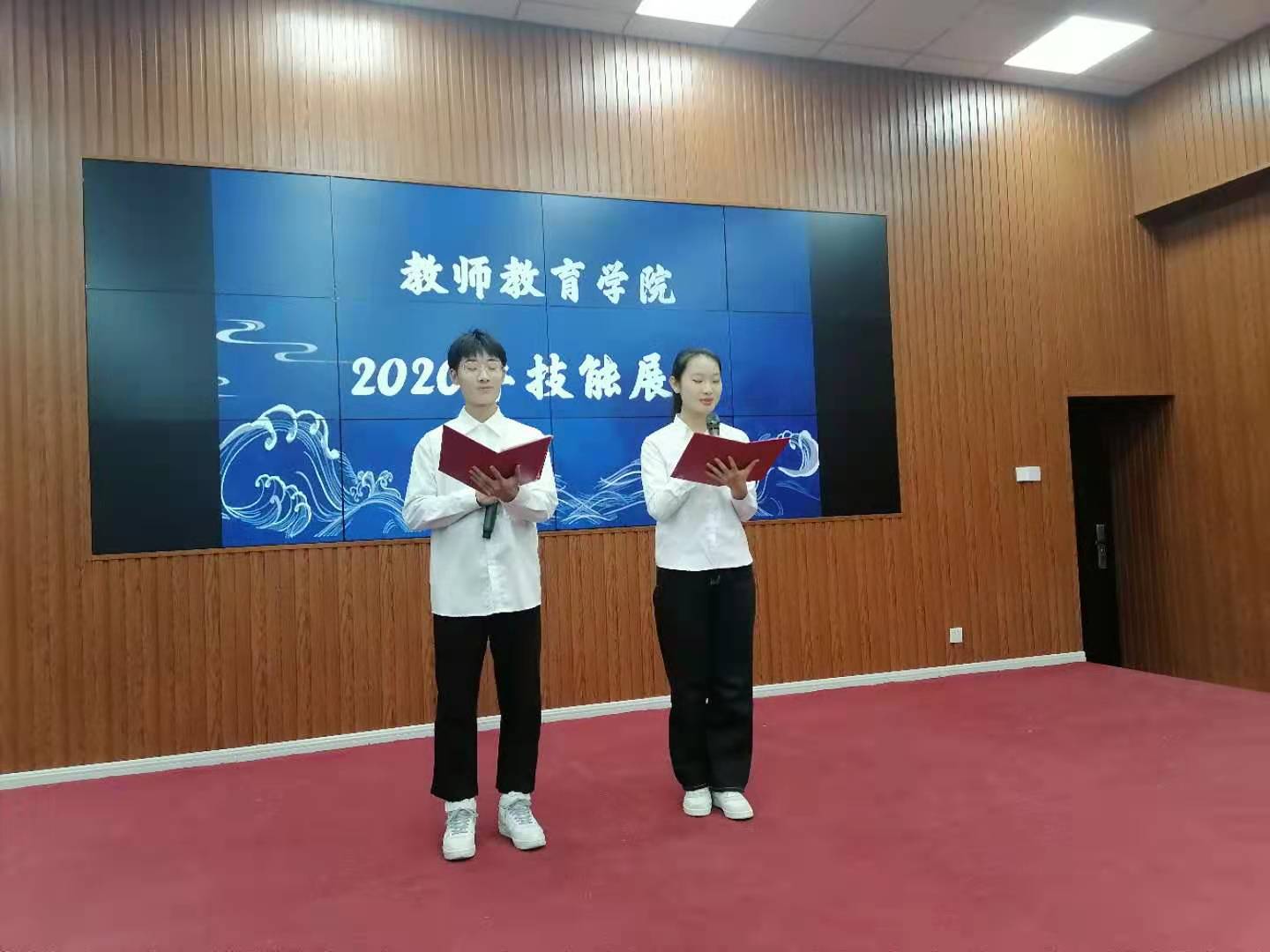 12月18日下午,教师教育学院在知行楼113演播室举办2020—2021学年第1学期从教技能展演活动。同时段,教师教育学院学生的书法、绘画等展览活动在知行楼二楼板书板画训练长廊进行。