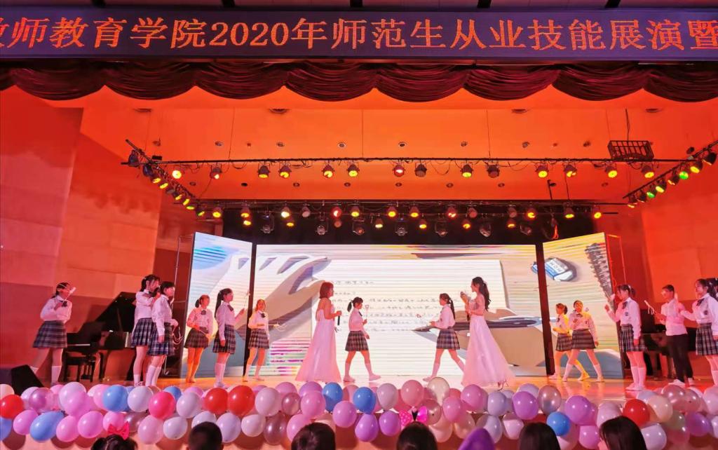 2020年11月20日晚,教师教育学院在南校区音乐厅举行2020年师范生从业技能展演暨迎新晚会,主题为“扬教师风采,书时代青春”。
