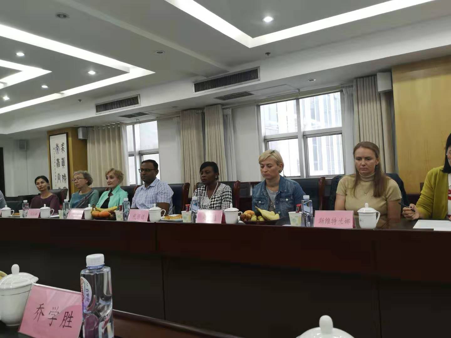 教务处、国际交流合作处、科研处、后勤管理处、外国语学院、教育科学学院、大学外语教学部相关负责人以及全体外籍教师参加座谈。