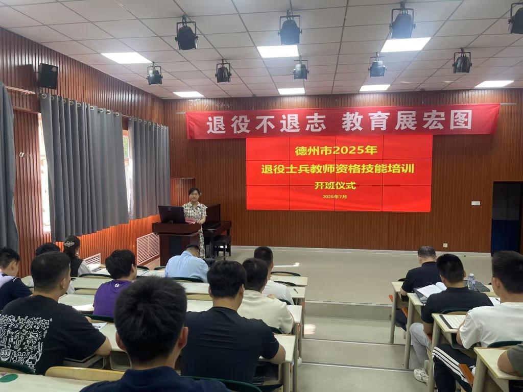 房院长在致辞中对全体参训学员表示热烈欢迎,并简要介绍了教师教育学院的办学情况、师资力量及本次培训的课程安排与实施方案。她指出,此次培训是深入贯彻习近平总书记关于退役军人就业创业工作重要指示精神、落实国家和省市关于退役军人教育培训政策的具体举措,旨在全面提升退役士兵从教能力,拓宽高质量就业渠道。学院将充分发挥师范专业优势,精心组织课程内容,配备优质教学团队,提供全方位服务保障,确保培训高效有序开展。她鼓励学员们珍惜培训机会,坚定职业信心,严守学习纪律,确保安全顺利完成各项学习任务,并预祝2025年德州市退役士兵教师资格技能培训取得圆满成功。